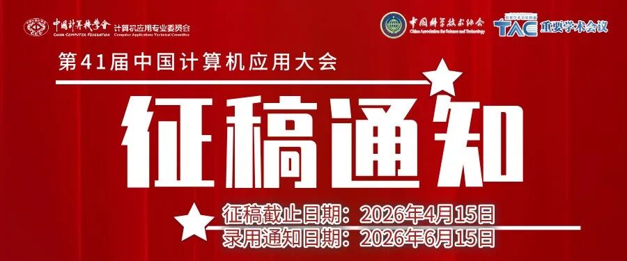 征稿通知 | 第41届中国计算机应用大会(NCCA2026)