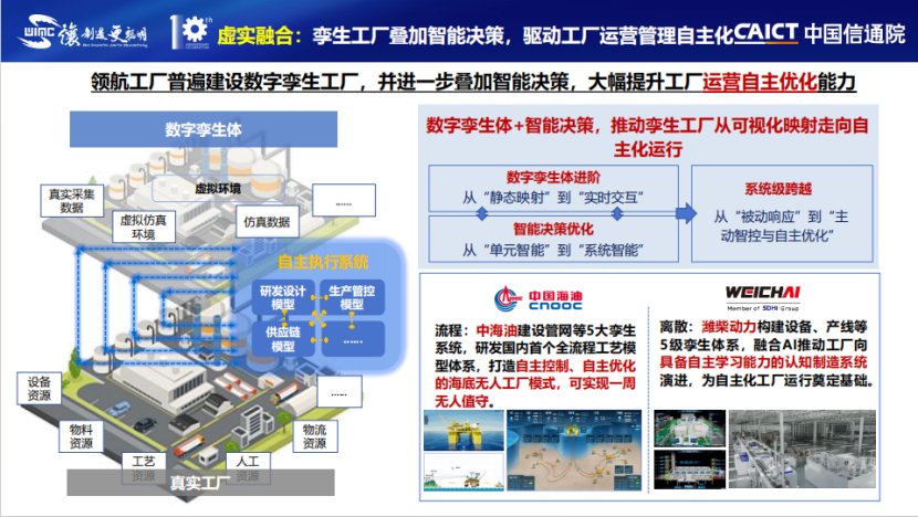 一是虚实融合,领航工厂普遍建设数字孪生工厂,并进一步叠加智能决策,大幅提升工厂运营自主优化能力;